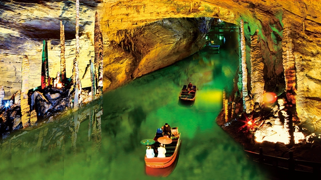 黃龍洞如今已經(jīng)開放聚會(huì)廳、響水河、天仙宮、天柱街、龍宮、迷宮六大游覽區(qū),這些景區(qū)緊密相連,各具特色。游覽方式為水陸兼?zhèn)?,其?200米旱路、800米水路,整個(gè)時(shí)間約兩小時(shí),從原進(jìn)口出洞。